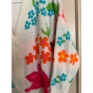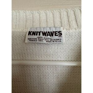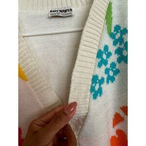 Vintage Knit Waves Acrylic White Floral Button Down Cardigan Woman's Size Small