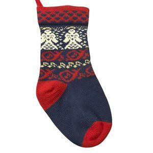 Vintage Knit Wool Stocking by Tungey Wood Wool Designs 17” Angles Red Blue Gold