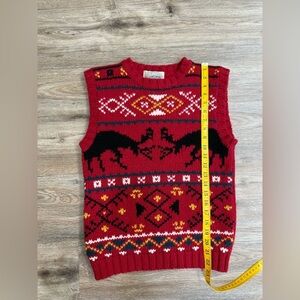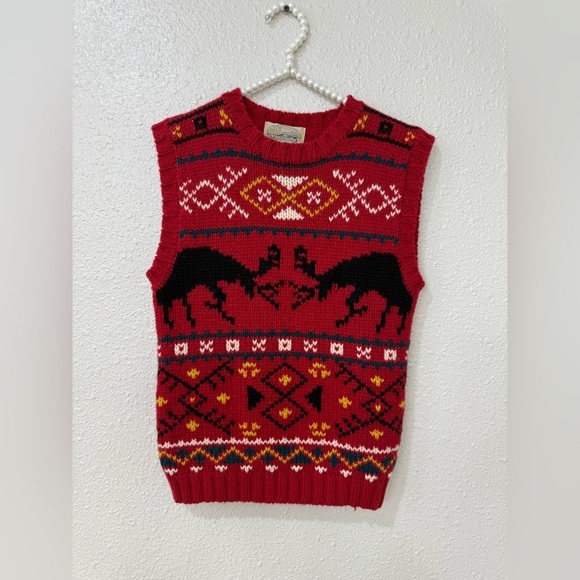 Vintage Knit Wool Vest, fighting elk deer design Size S