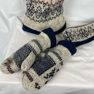 Vintage Knit Wool Winter Hat, Headband, & Mitts Set