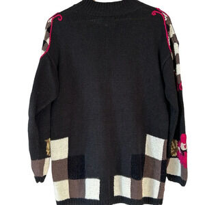 Vintage Knit by Hand Poinsettia Ugly Christmas Long Sweater Oversized Festive Holiday. Cotton Blend