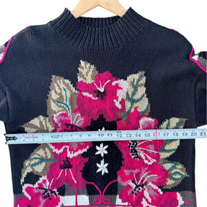 Vintage Knit by Hand Poinsettia Ugly Christmas Sweater Oversized Festive Holiday