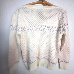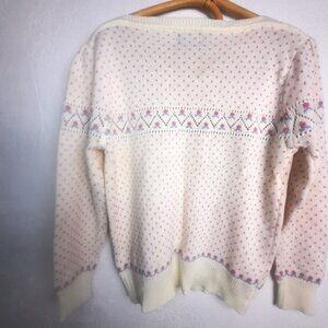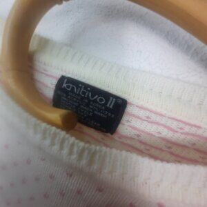 Vintage Knitivo II Knit Sweater, White with Pink flowers, Medium, Granny Cottage