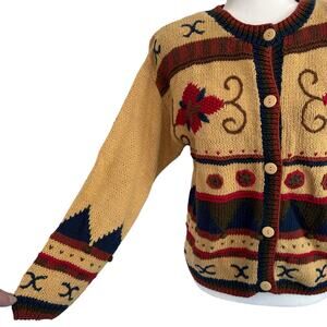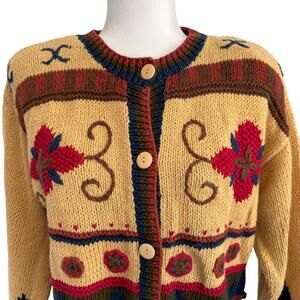 Vintage Knitted Capezio Cardigan Sweater MEDIUM Floral 80s Cottage Americana