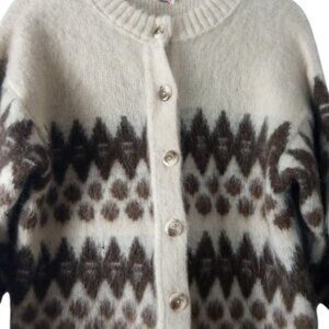 Vintage Knitting Mill Hekla Womens Cardigan Sweater Beige Brown Icelandic Wool M