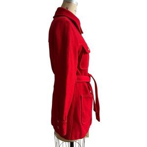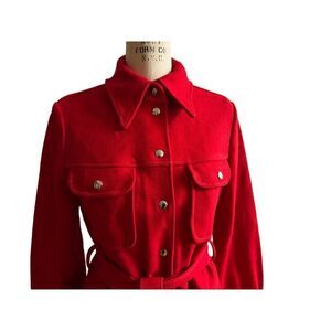 For Sale is a beautiful Vintage Knockabouts Pendleton Red Virgin Wool Jacket. Collared neck line, snap front, chest and hand pockets and belted waist.
