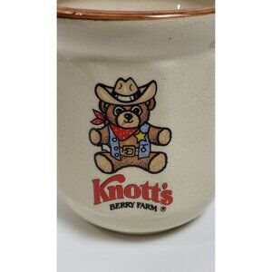 This vintage Knott's Berry Farm ceramic mug features an adorable cowboy bear graphic, adding a charming touch to your kitchenware collection.