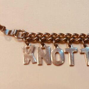 Vintage Knott's Berry Farm gold tone charm bracelet. Foldover clasp. In great vintage condition. The letters are flat and 1/2 inch tall. Bracelet is 6.5 inches long.