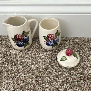 Vintage Knott's Berry Farm Hand Painted Sugar & Creamer Lid Set 3 Piece