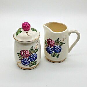 Vintage 1960's ceramic breakfast syrup and covered jam jar from Knotts Berry Farm in Buena Park, CA.