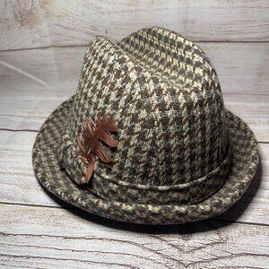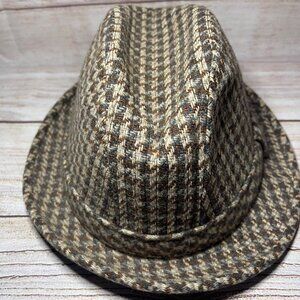 Vintage Knox Premier Quality Fedora Houndstooth Plaid Wool Tweed Hat Size 7 3/8