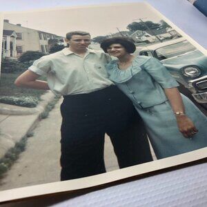 Vintage 1960's Kodachrome Enlargement Photo of a Greaser Looking Boy with Girlfriend in front of a 1956 Chevy. 8 x 10 enlargement made in 1966 in original Kodak envelope.