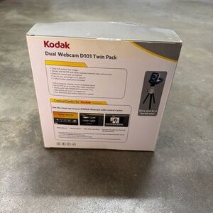 Brand new, still-sealed Kodak Dual Webcam D101 Twin Pack with built-in microphone. Includes everything shown in box; never opened. Perfect for video calling, dual-camera setups, or backup webcams.