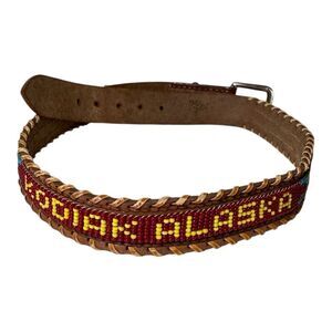 Vintage Kodiak Alaska Beaded Native American Leather Brown Belt Men’s 28