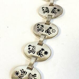 Vintage Kokopelli Necklace 925 Sterling Silver Plated Oval Link Mexico Southwest