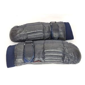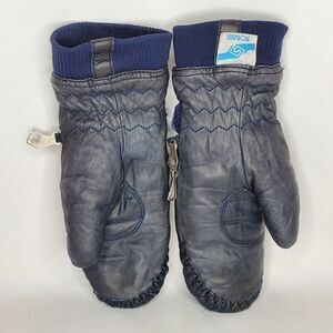 Vintage Kombi Leather Insulated Mittens Gloves Ladies Medium Navy Blue