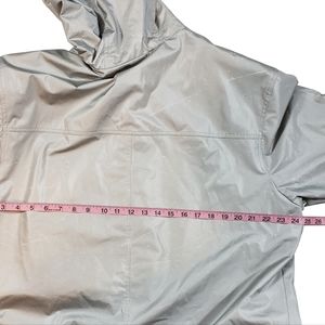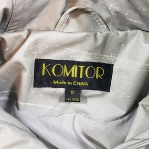 Vintage Komitor Silver Hooded Rain Coat Sz 1X Zip-Up Utility Windbreaker Jacket