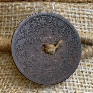 Vintage ~ Very fine coral red glass seed beads ~ Konyak Naga Red Coral Colored Glass Seed Beads multi Strand Necklace with natural woven fibers loop and old British India coin from 1908 for the clasp closure at end