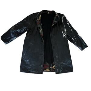 Vintage Koos Of Course! Black Feathers Reversible Vinyl & Polyester Jacket Large