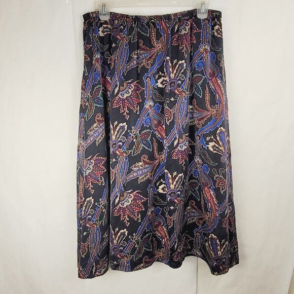 Vintage Koos Of Course black silk maxi skirt 1X paisley Boho Retro Whimsigoth