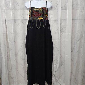 Vintage Koos of Course Black Artsy Bib Overall Sleeveless Midi Dress Size 1X