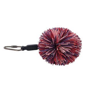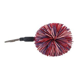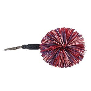Approximately 3 inch Koosh ball - shades of red, purple & pink. Attached to a hook key chain. From 1991. Vintage, retro, toys, Nineties, 1990's, 1990s, 1990's Toys