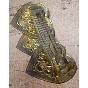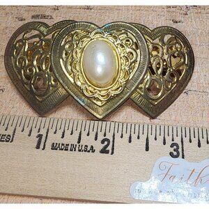 Vintage Korea Gold Tone Faux Pearl Cabochon Heart Hair Barrette Clip Scroll