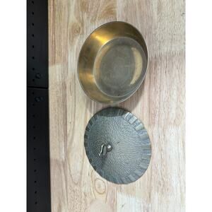 Vintage Korean Brass Trinket Box with a Tree Bark Brutalist Textured Lid