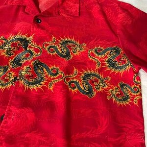 Vintage Korean C-Two Club Grunge Button Down Shirt Red Dragon Size L Button Up