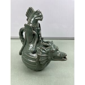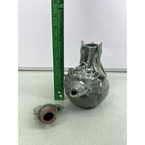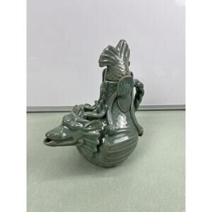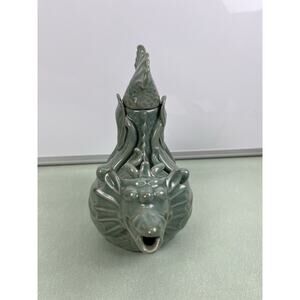 Vintage Korean Celadon Porcelain Dragon Ewer Sake Teapot Marked RARE