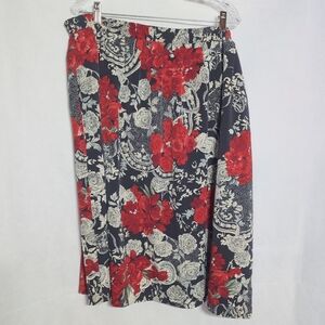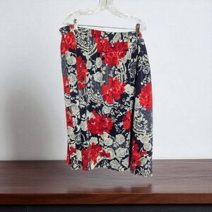 Vintage Koret 22W Floral Red and Black Women's Skirt 28in Length