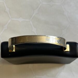 there is discoloration in handle but is easily covered with scarf. There is also discoloration in the fastener.