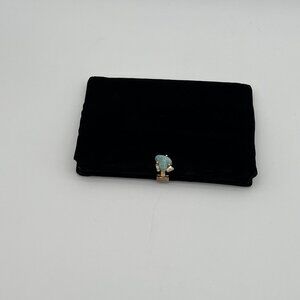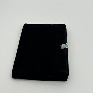 This elegant black velvet clutch by Koret features a turquoise stone clasp and comes with a matching coin pouch. Ideal for formal occasions or evening use.