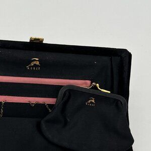 Vintage Koret Black Velvet Clutch W/ Turquoise Stone Clasp & Matching Coin Pouch