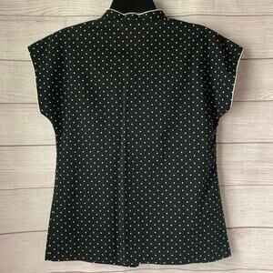 Vintage Koret Black with White Polka Dots Button Up Shirt Mandarin Neckline