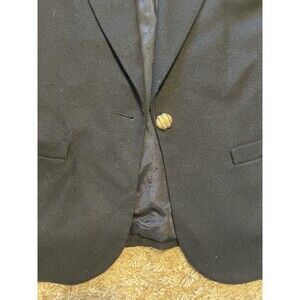 This Vintage Koret Career Womens Blazer Suit Jacket in black, is a classic and stylish piece made from 100% wool with a lined interior. Id estimate this piece to be a womans size M or L. The jacket features a solid pattern, long sleeves, and a one-button front closure. Perfect for various occasions such as formal, workwear, and casual, this blazer exudes a timeless elegance with a touch of vintage charm. Made in the Dominican Republic, this blazer is a versatile addition to any woman's wardrobe for the winter, fall, and spring seasons.