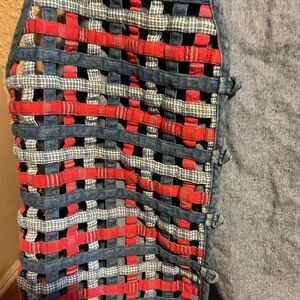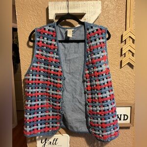 Vintage Koret City Blues Denim Red White Blue Weaved Vest Women’s Size 16W