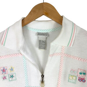 Vintage Koret Francisca Cardigan Knit Sweater Sunglasses Beach Sailboats Size Small Granny Coastal Grandma Cottage