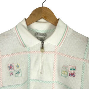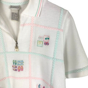 Vintage Koret Francisca Beachy Cardigan Knit Sweater Sunglasses Sailboats Size S