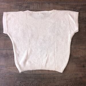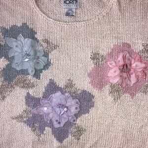 Koret Petites vintage 80's boxy sweater beige with beautiful Flower appliques in light blue, pink and lavander.