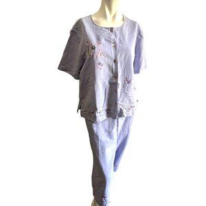 Vintage Koret Linen Blend Floral Pant Suit Sz Large Womens Purple Button Front S