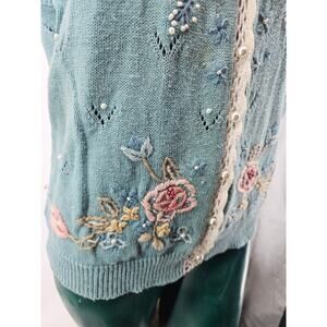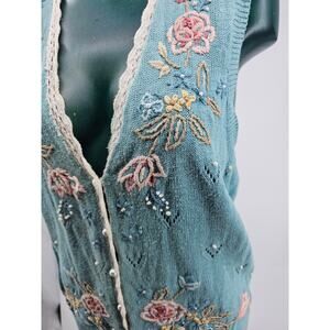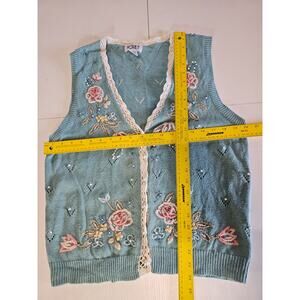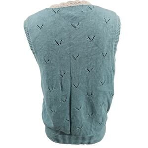 Vintage Koret Pastel Blue Cotton Crochet Floral Granny Sweater Vest S 3810