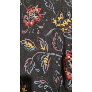 Vintage Koret Womens Black Sweater Embroidered Sequined Flowers Sz PM Grannycore