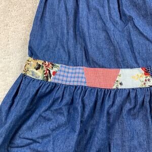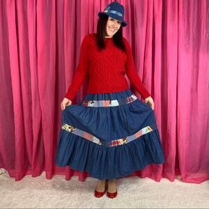 Vintage Koret Petites tiered denim and calico patchwork boho maxi skirt, med