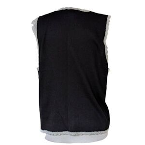 Vintage Koret Sweater Vest Size S Black Striped Crocheted Cursive Cottage Wool