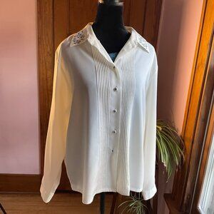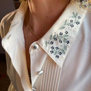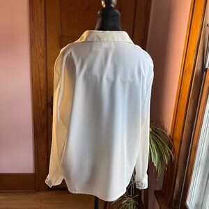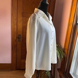 Vintage Koret White Blouse 90s Embroidered Collar Button Up Shirt Sz 12 Coquette