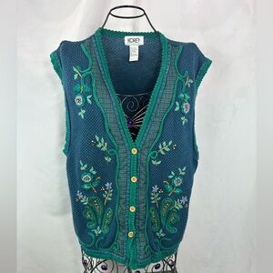 Vintage Koret blue floral embroidered button down vest size L
