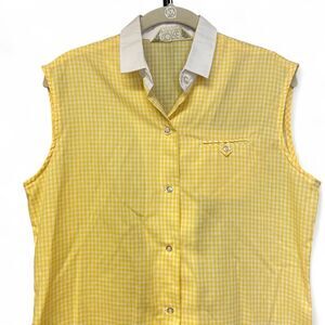 Vintage Koret of California yellow and white plaid sleeveless blouse size M