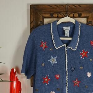 Vintage Koret patriotic short sleeve cardigan sweater S boxy