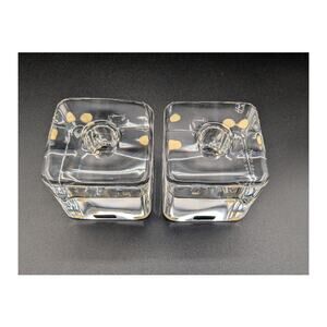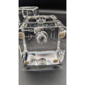 Vintage Kosta Boda Block Crystal Candle Holder Set of 2. Signed Warff